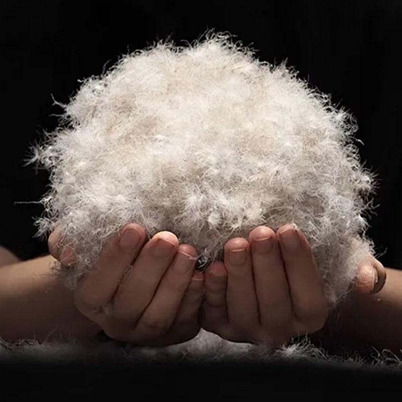 De belangrijkste donsproducerende gebieden van de buik en nek van grijze eenden worden zorgvuldig geselecteerd en een wetenschappelijk verhoudingsproces wordt gebruikt om 50% grijze eendendons van hoge kwaliteit en 50% hoogwaardige verenvezels te combineren om een natuurlijke, warme composietstructuur te vormen. Het dons heeft de vorm van een driedimensionale rietcluster en het oppervlak van elk dons is dicht bedekt met een nauwkeurig driehoekig poriënrooster om een dynamisch microcirculatiesysteem met temperatuurcontrole te bouwen. Als het koud is, krult de vezel op natuurlijke wijze om een luchtisolatielaag te vormen, en als het warm is, strekt de vezel zich uit om de vochtafvoer te bevorderen, waardoor een dubbele intelligente regeling van temperatuur en vochtigheid wordt bereikt. De unieke holle vezelstructuur kan de door het menselijk lichaam afgegeven warmte efficiënt absorberen, terwijl het een natuurlijke thermische isolatiebarrière vormt, waardoor de invasie van externe koude stromingen effectief wordt geblokkeerd en precies de juiste licht- en warme ervaring wordt geboden.